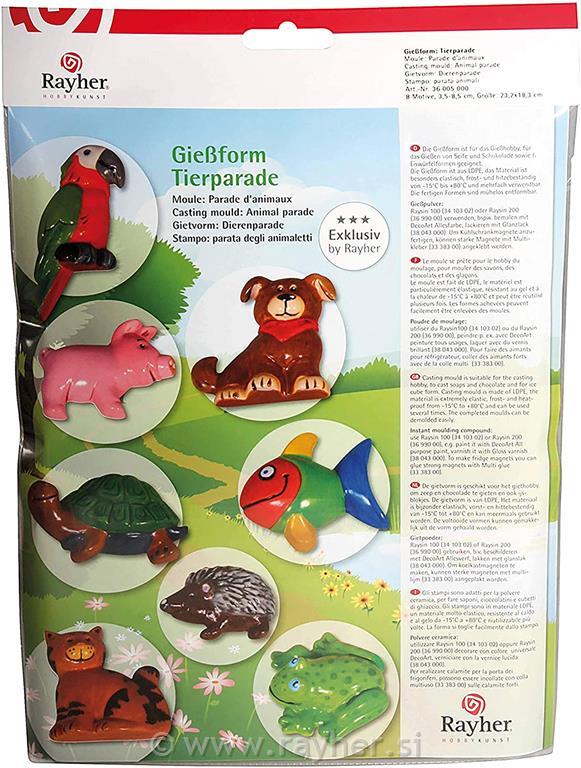 rayher.it Modeliranje Vlivanje in modeliranje Kalupi Dekorativni kalupi Kalup: Živali, 8 motivov, 3.5-8.5cm, velikost: 23.2x18.3cm Aktualna cena:7,99 € Šifra artikla:36005000 Blagovna znamka:Rayher Zaloga: na zalogi Dodaj v košarico kos Opis izdelkaKalup: Živali, 8 motivov, 3.5-8.5cm, velikost: 23.2x18.3cm
