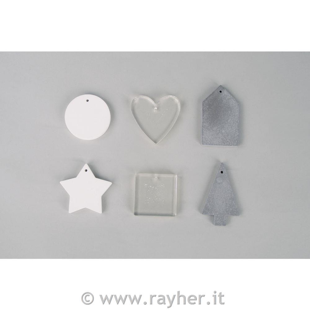 Velikosti motivov: zvezda, srce, krog, kvadrat cca 5 - 6,5cm; Hiša in drevo cca 5 x 8cm