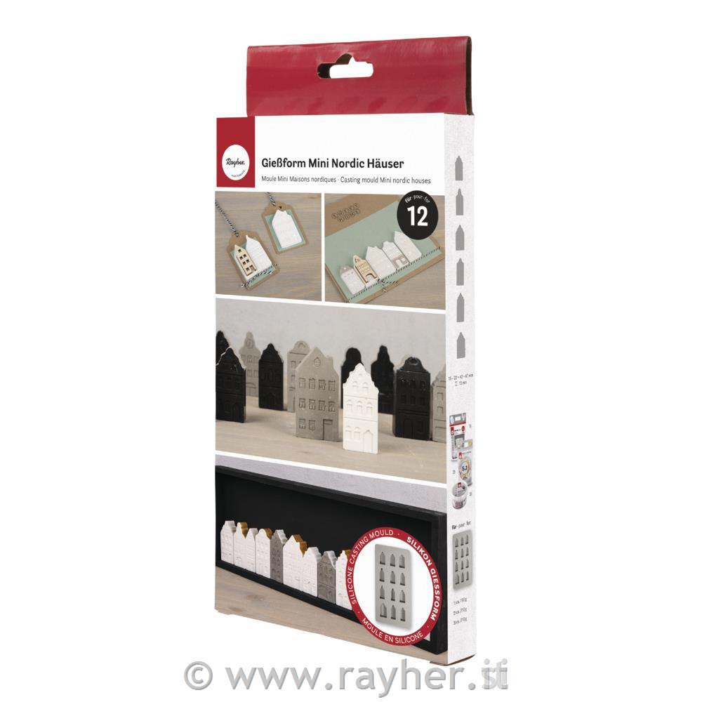 • Silicone mould Mini nordic houses, 14.5x26x1.5cm, 12 shapes, box 1pc