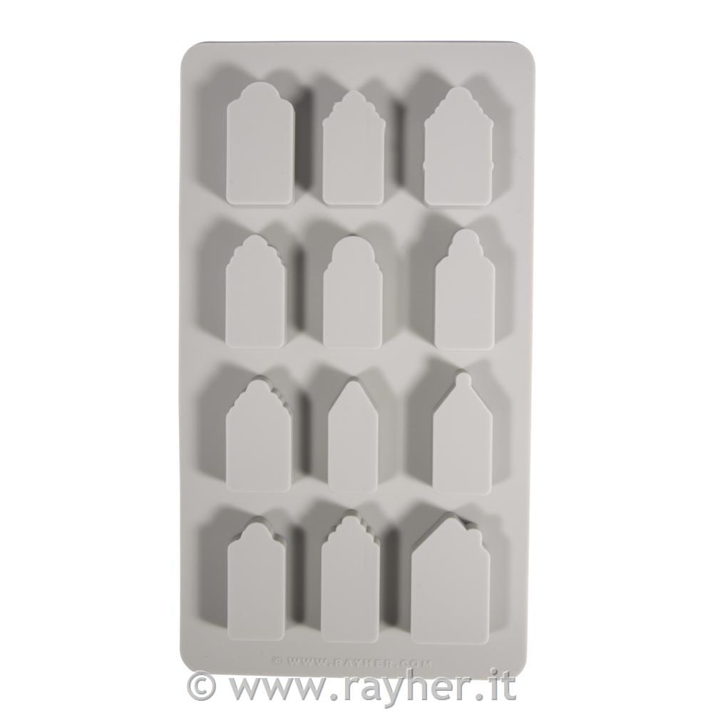 Silicone mould Mini nordic houses, 14.5x26x1.5cm, 12 shapes, box 1pc