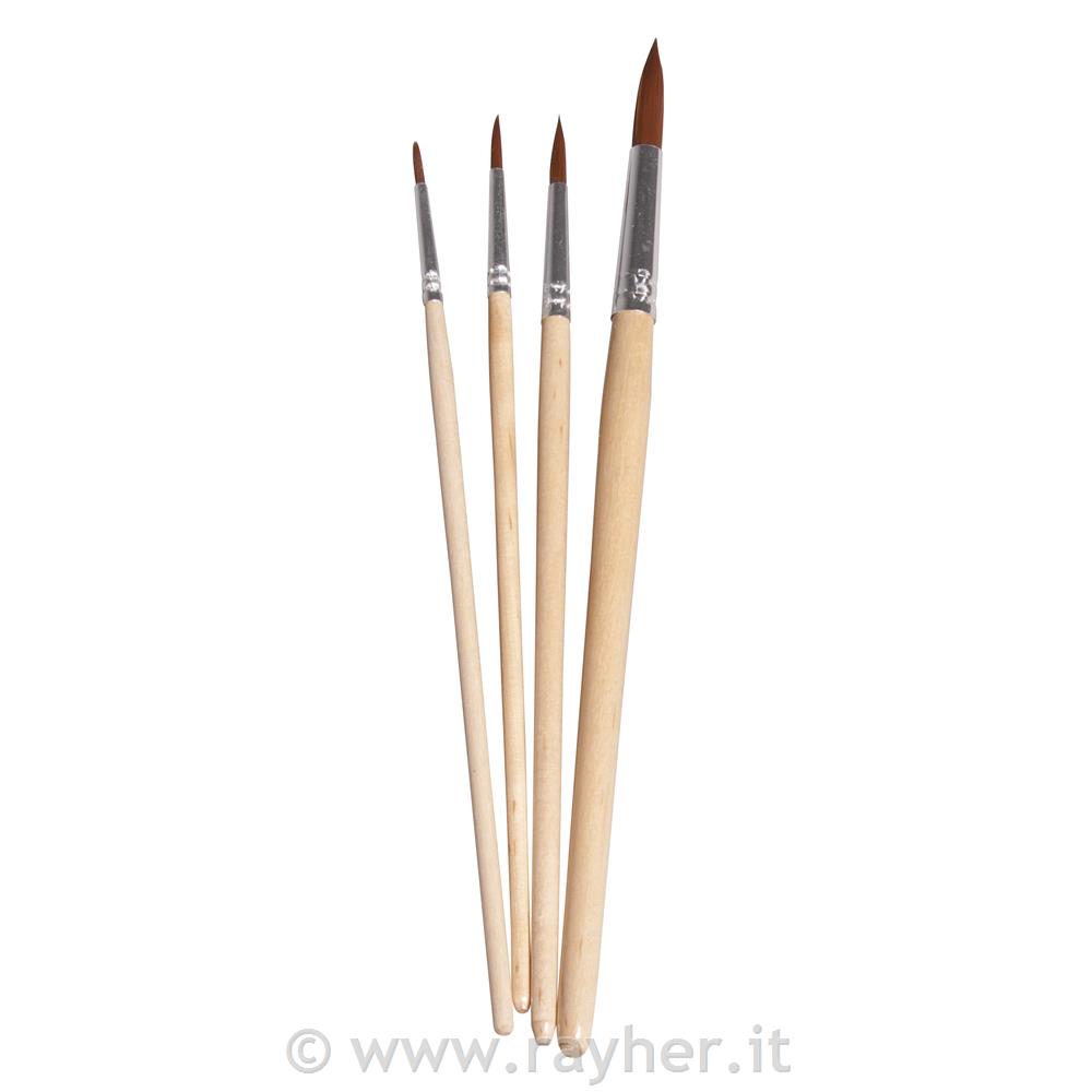 Komplet je sestavljen iz 4 okroglih sintetičnih čopičev. (velikosti 1, 3, 6, 10).
