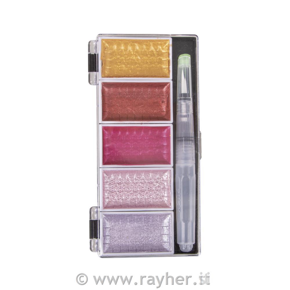 Akvarel Metallic, Pale-pink, 5 barv, 25x45mm, +H2O čopič