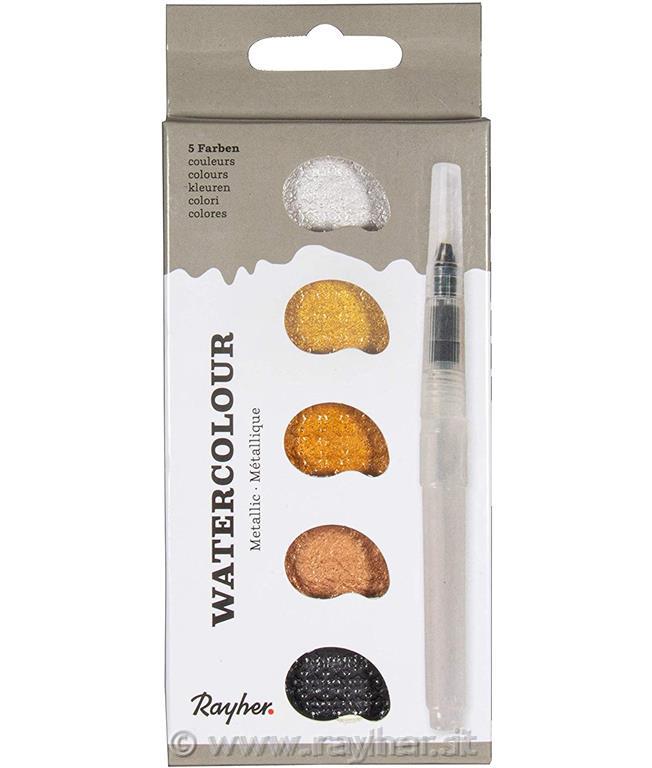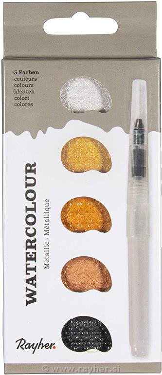 Watercolour Metallic5 colours 25x45mm, incl. H2O brushgold