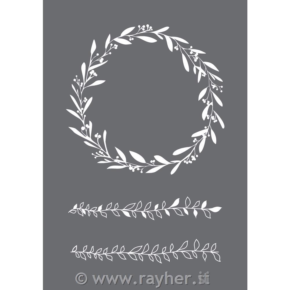 Šablona z motivom venčka in listne bordure, ki vam bo pomagala označiti različne izdelke; od tekstila do lesa.
