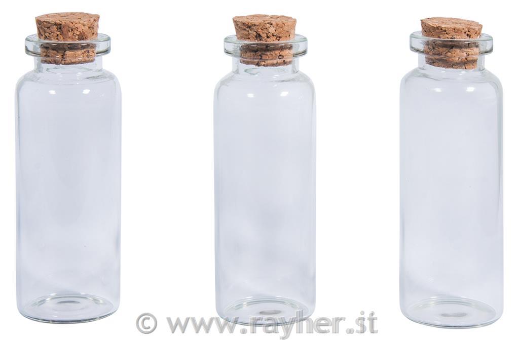 Recipiente vetro c.coperchio sughero, 2,, 6,5cm, 20ml, apertura 1,2cm, box 3pz