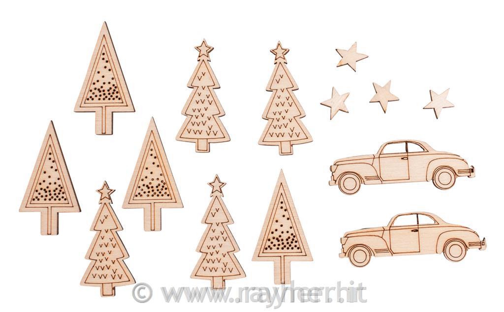 Leseni okraski, Smreke+avto, 1.5-3.9cm, set 14