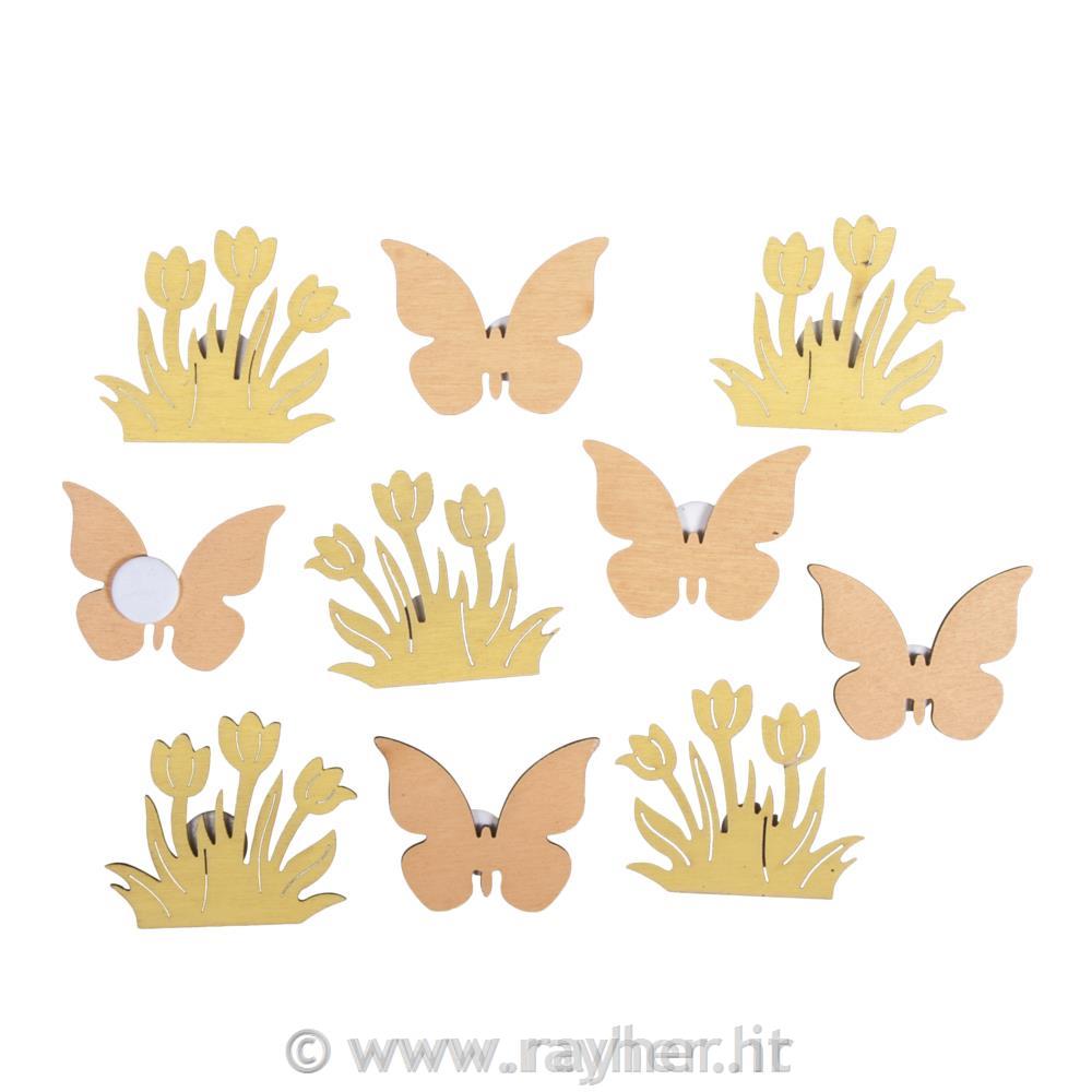 Miniature legno fiore+farfalla, 3cm o, ass.c. bollino ades., bus.blis. 10pz