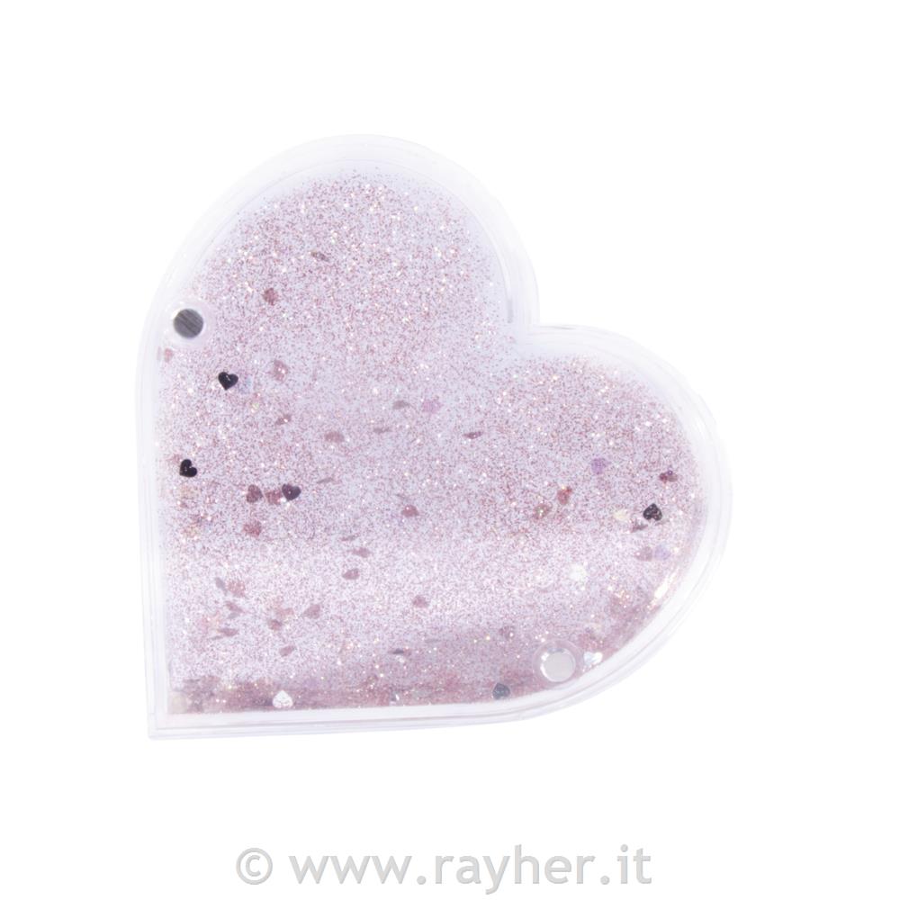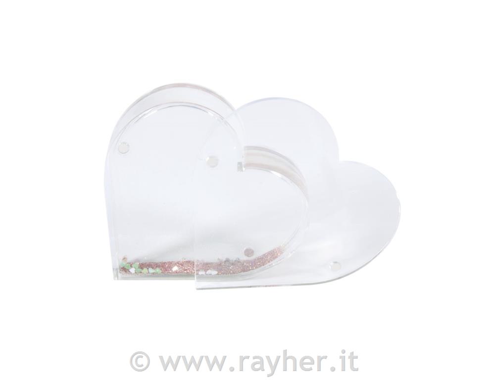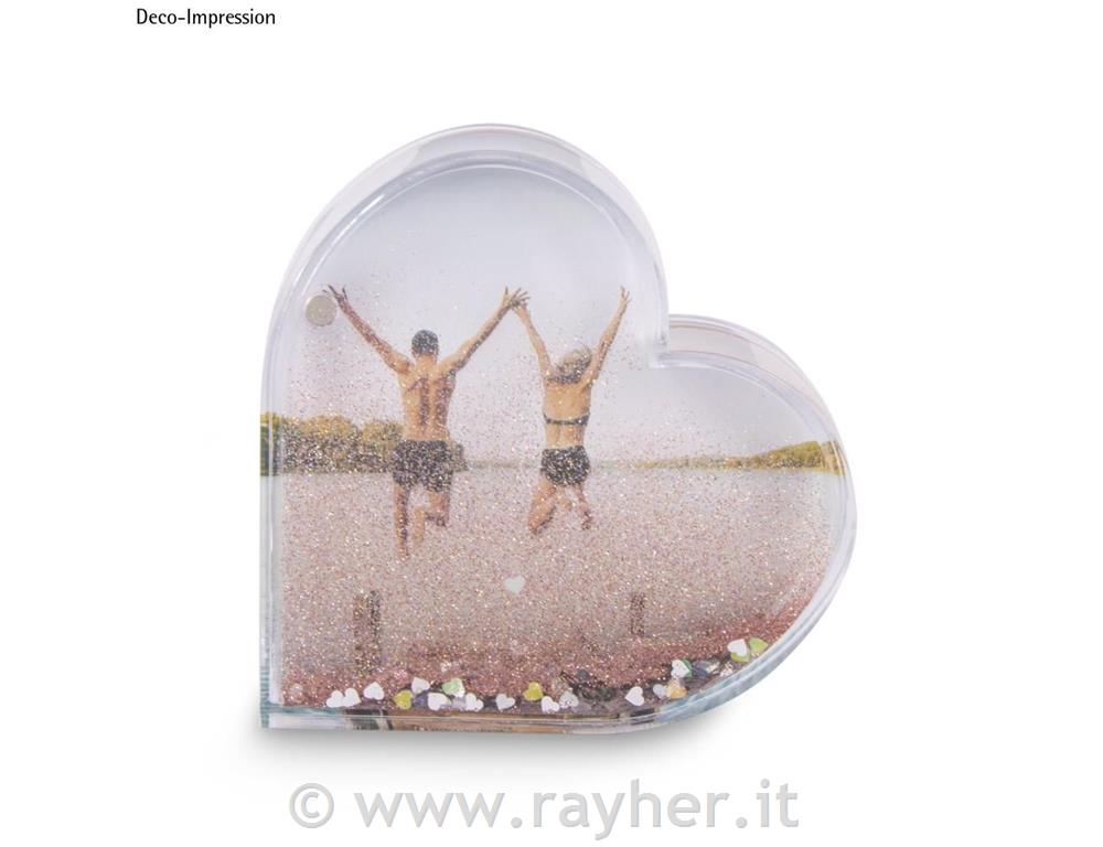 Akrilni magnetni okvir za slike (9,4x2,4x9,4 cm) je napolnjen s 4 različnimi dekorativnimi bleščečimi delci in srčki. Stresite okvir in bleščice bodo padale po sliki.