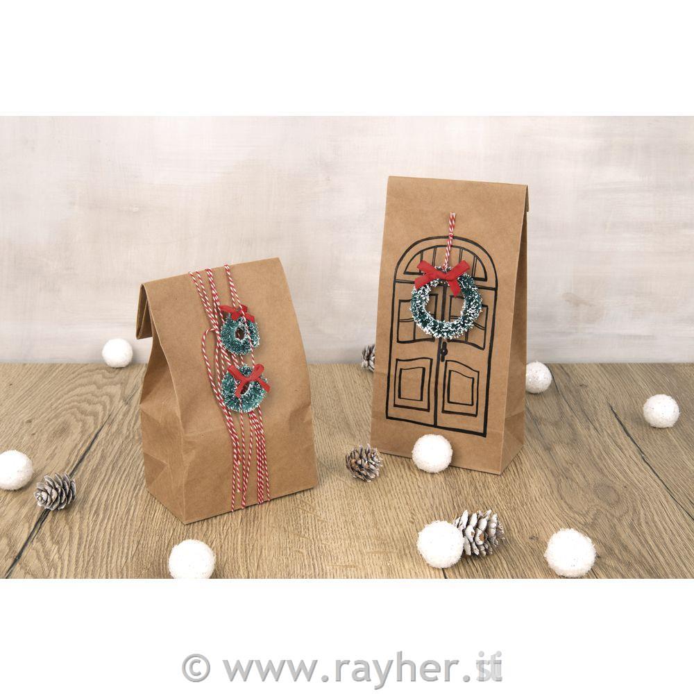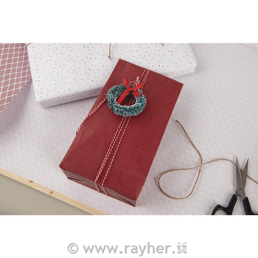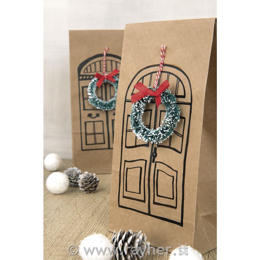 Mali božični venčki z rdečimi pentljami in vrvico za obešanje.