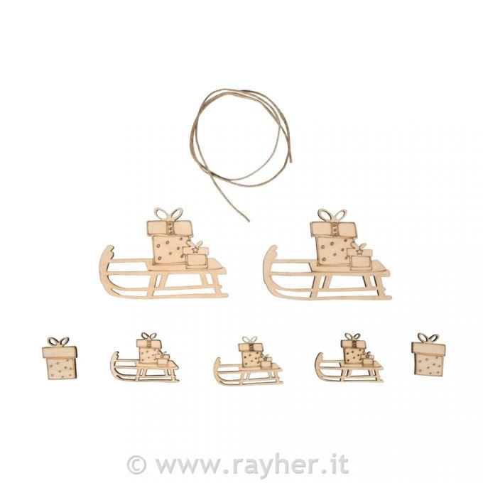 Leseni okraski Sani z darili 4-7,5 cm set 7