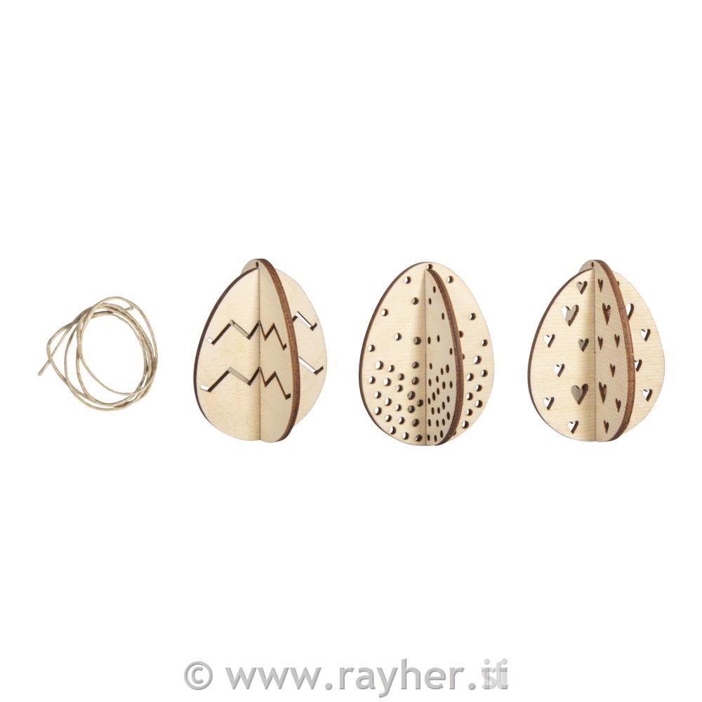 Lesena jajčka 3D, 5,5x7cm, set 3