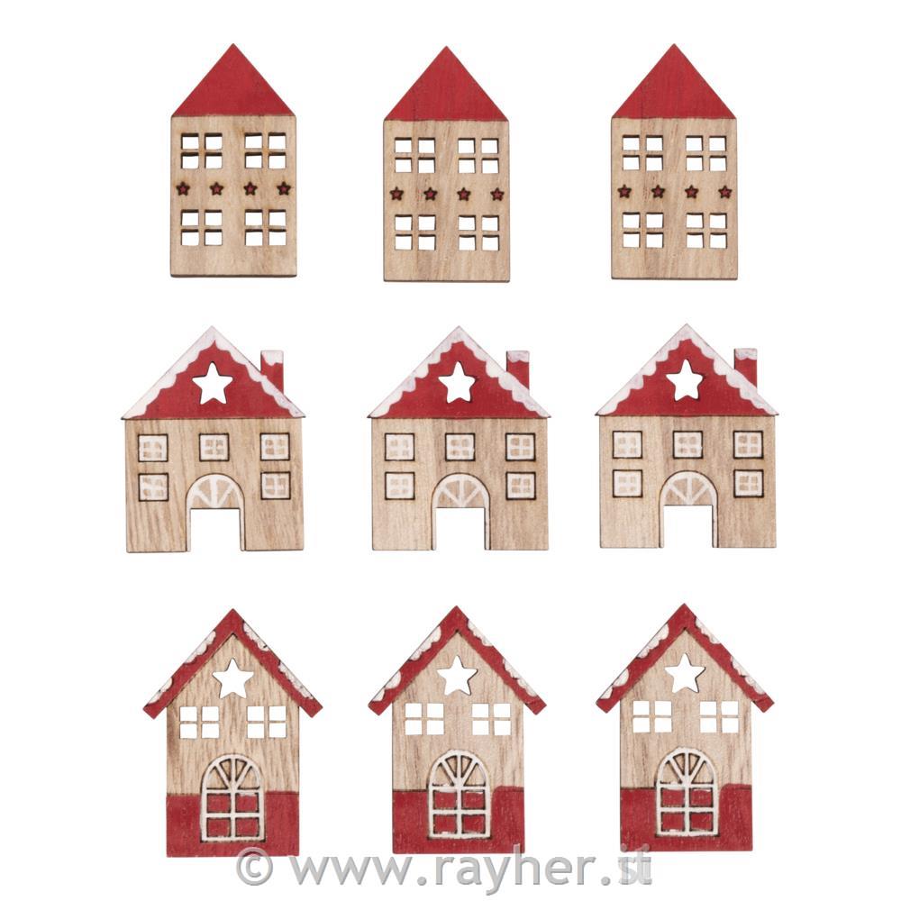 Vsebina: 9 lesenih hišic, 4,5-4,2 cm, raznolike