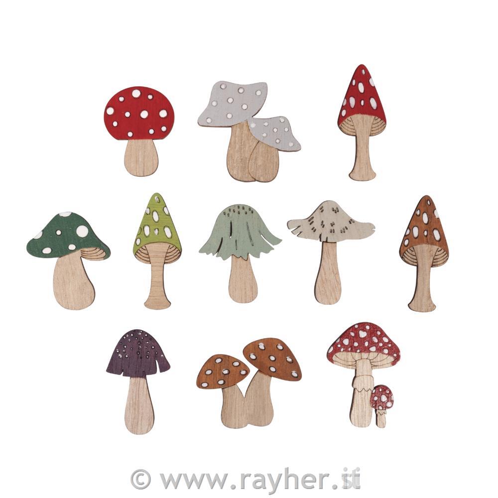 Ornamenti in legno Funghi 3,2-4,5 cm 11pezzi