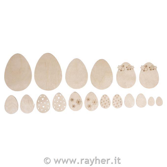 Okraski iz furnirja Velikonočna jajca, 2-8 cm, deb. 1mm, 18 kosov