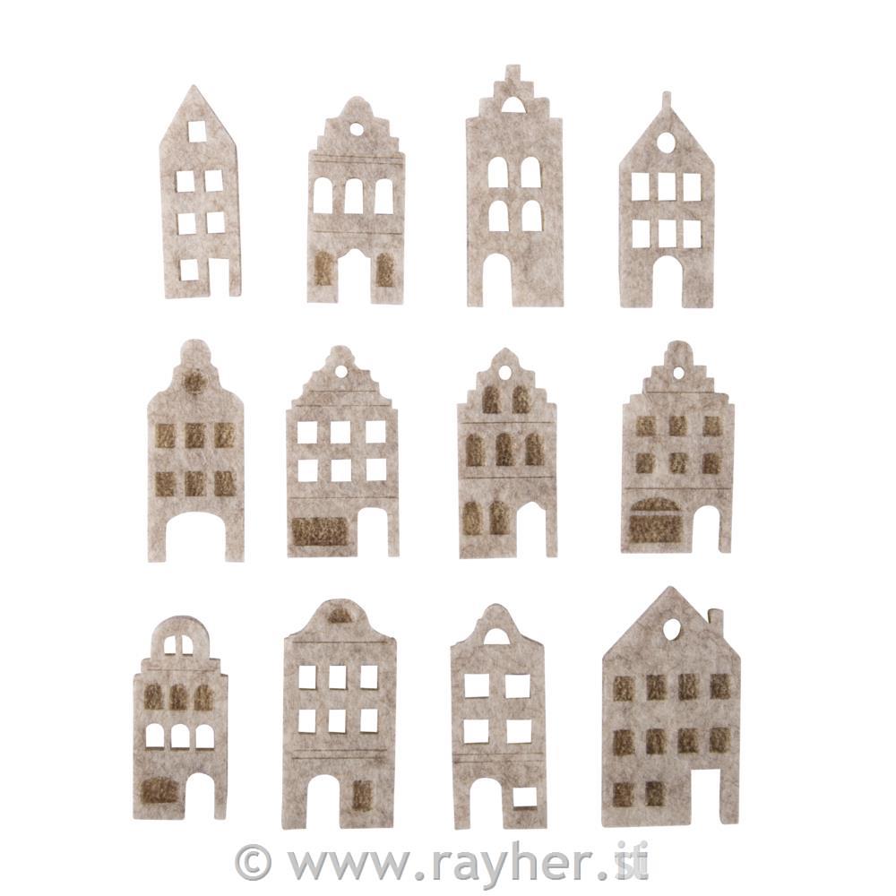 Hišice iz filca v nordijskem slogu, velikosti 3,5–4,2 cm, 12 kosov