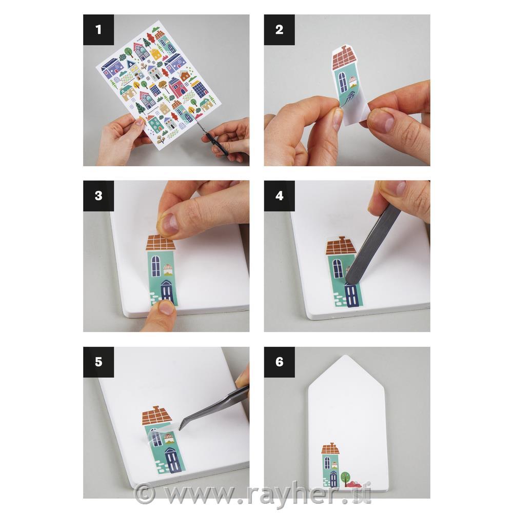 Transfer folije – nalepke z različnimi motivi hiš, mačk in cvetov so idealne za umetniško okraševanje tvojih dekorativnih predmetov iz Raysina, lesa, papirne kaše in papirja.