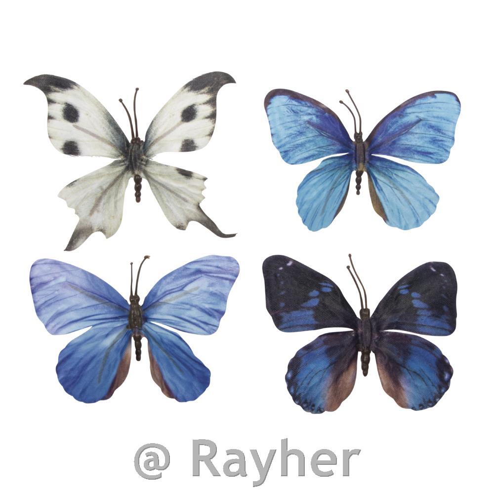 Tekstilni metulji s 3D-učinkom, dolžina 8,5 cm, 4 kosi v nežnih barvnih odtenkih. NASVET: Metulji imajo na spodnjem delu telesa dve odprtini različnih velikosti, v kateri lahko po potrebi z majhno kapljico lepila pritrdite daljša stebla ali žice.