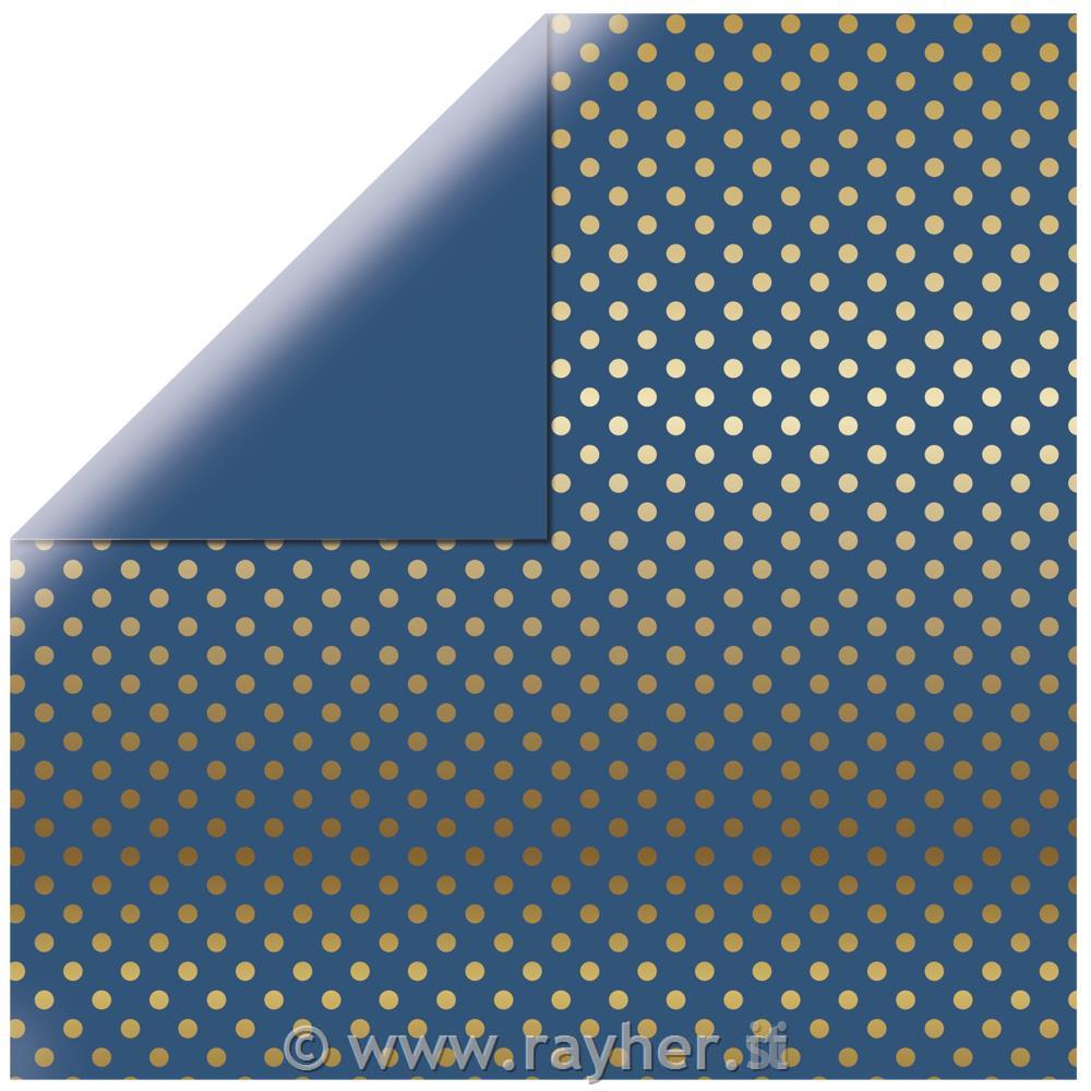 Carta scrapbooking "Gold Foil Dots", jeans, 30,5x30,5cm, 180g/m2