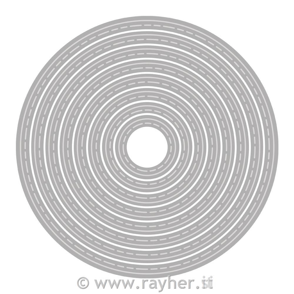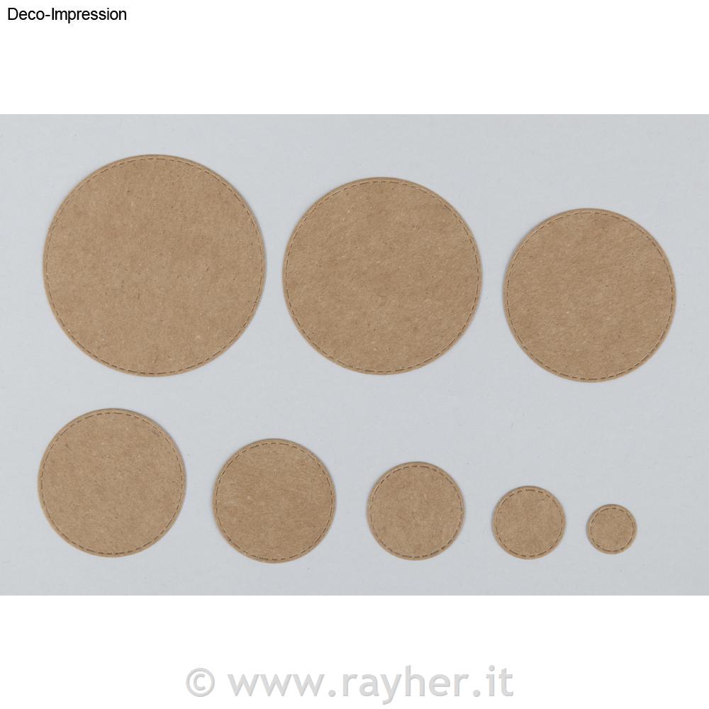 Šablone za izrezovanje „Krogi“, komplet 8 šablon, z zgornjim šivom na robu. Videti je, kot da je izrezan krog obrobljen s šivi.