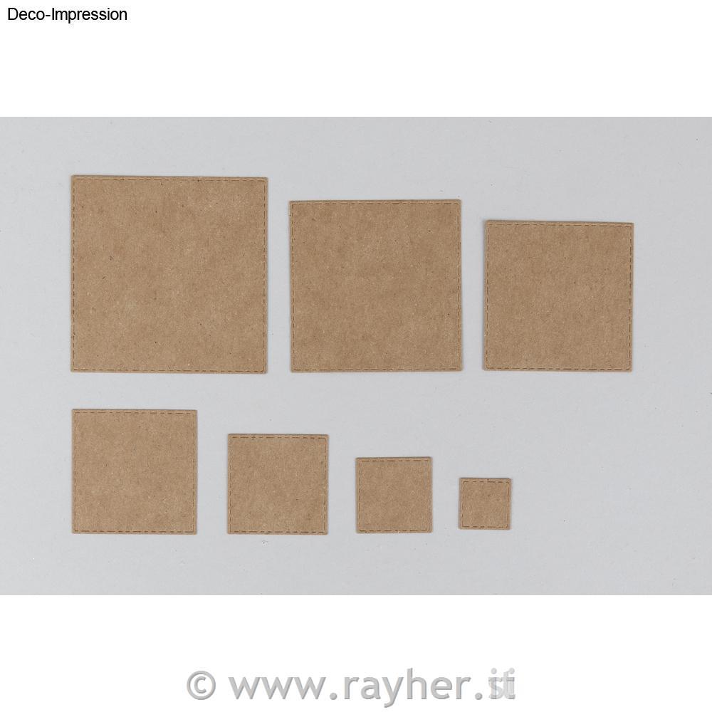 Šablone za izrezovanje „Kvadrati“, komplet 7 šablon, z zgornjim šivom na robu. Videti je, kot da je izrezn kvadrat obrobljen s šivi.