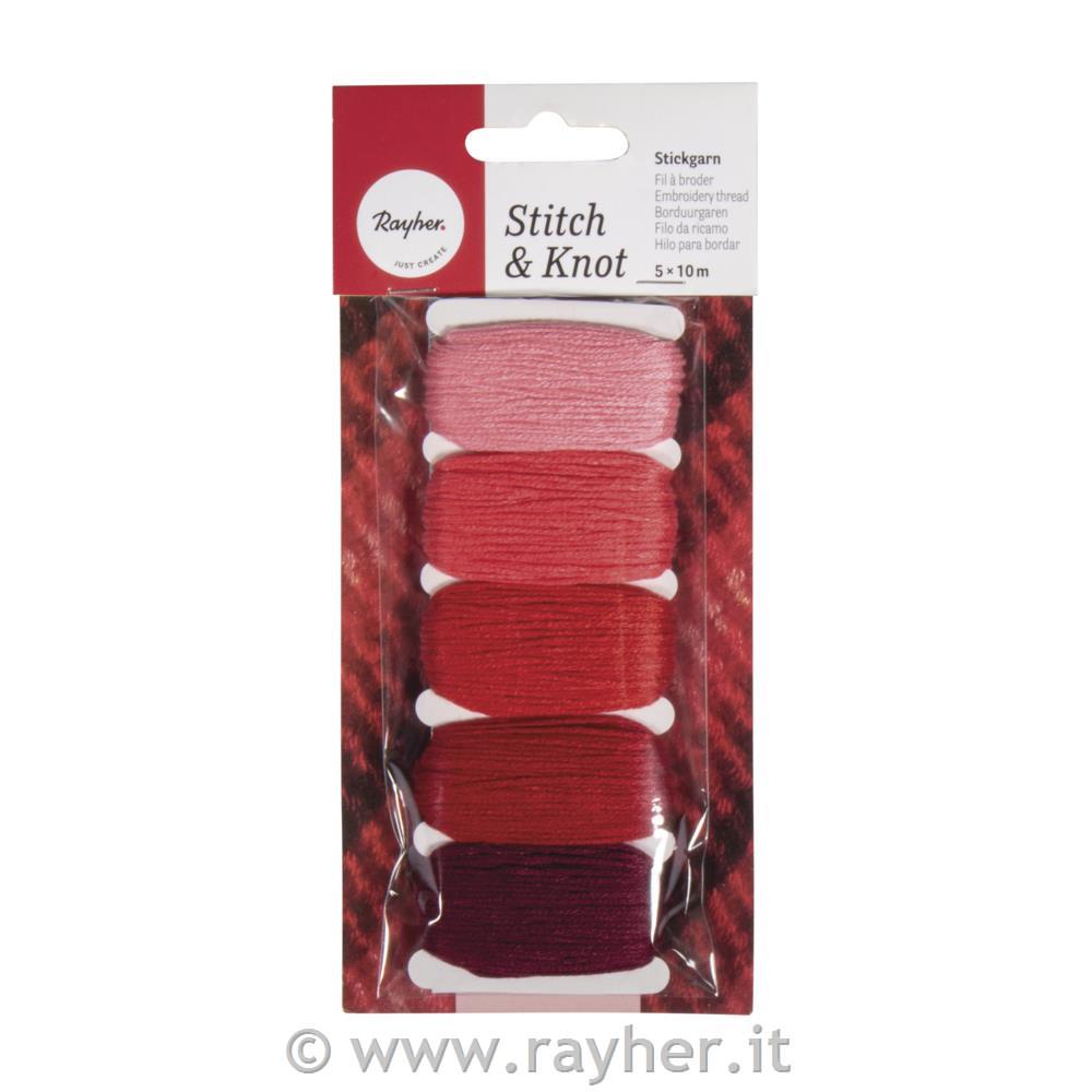 Filo cotone "Stitch & Knot"5 colori ciascun 10m in bus.blis.rosso ciliegia