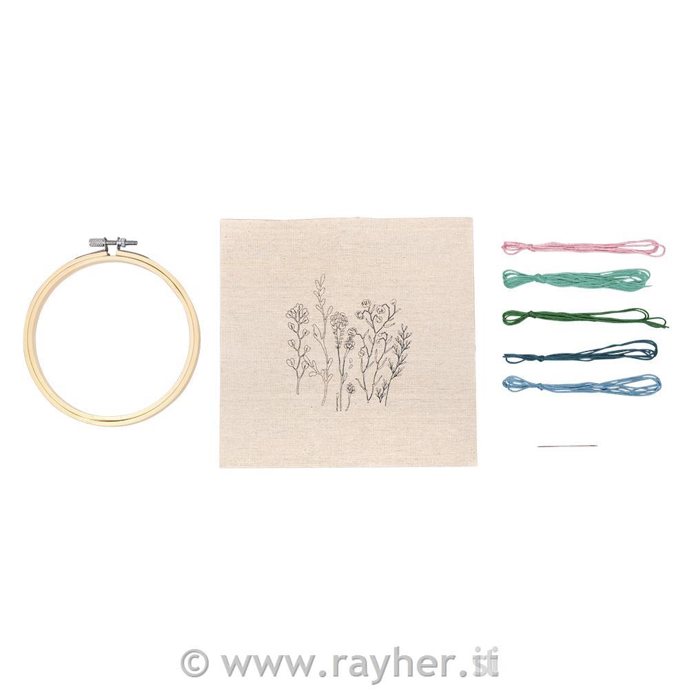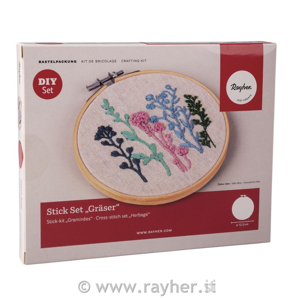 Set cornice ricamo bambu, 17cm , con accessori, bus.blis. 1set