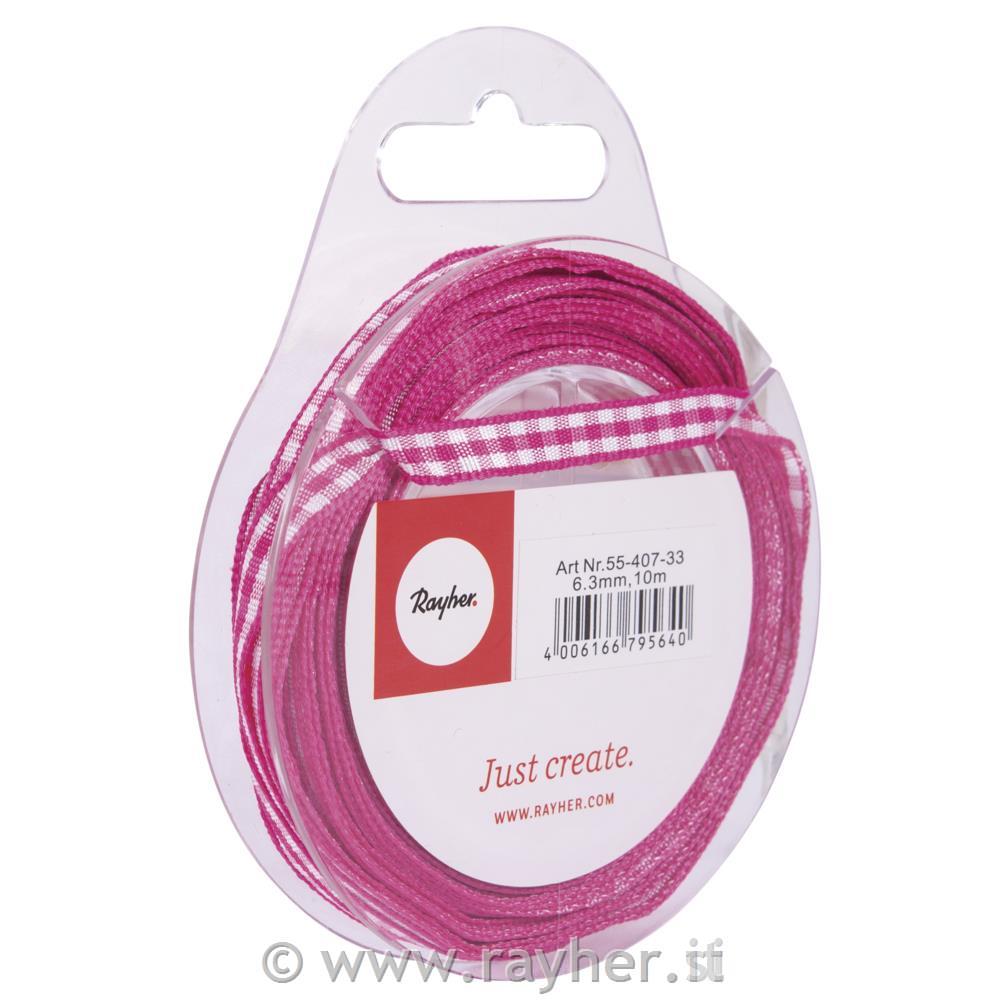 • Checked pattern ribbon, pink, 6mm, t-rol
