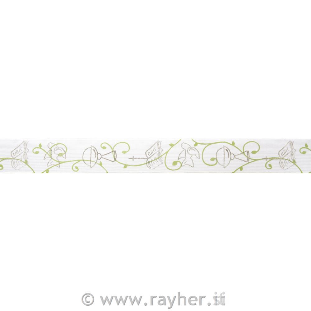 Trak organza krščanski motivi, bel, 40mm, z žico,1m