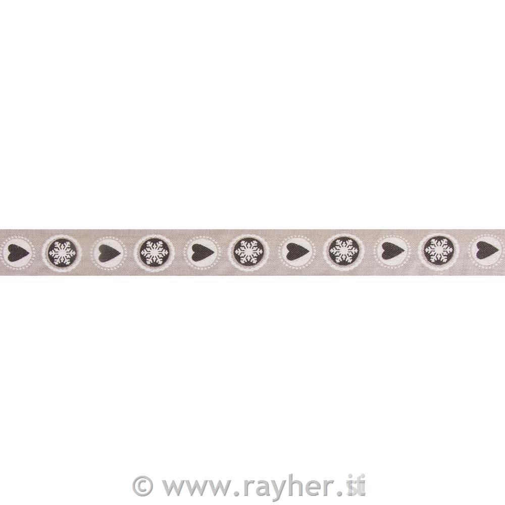 Nastro decorativo Pretty Winter25mm, c.bordo stabile, rotolo 20mgrigio chiaro