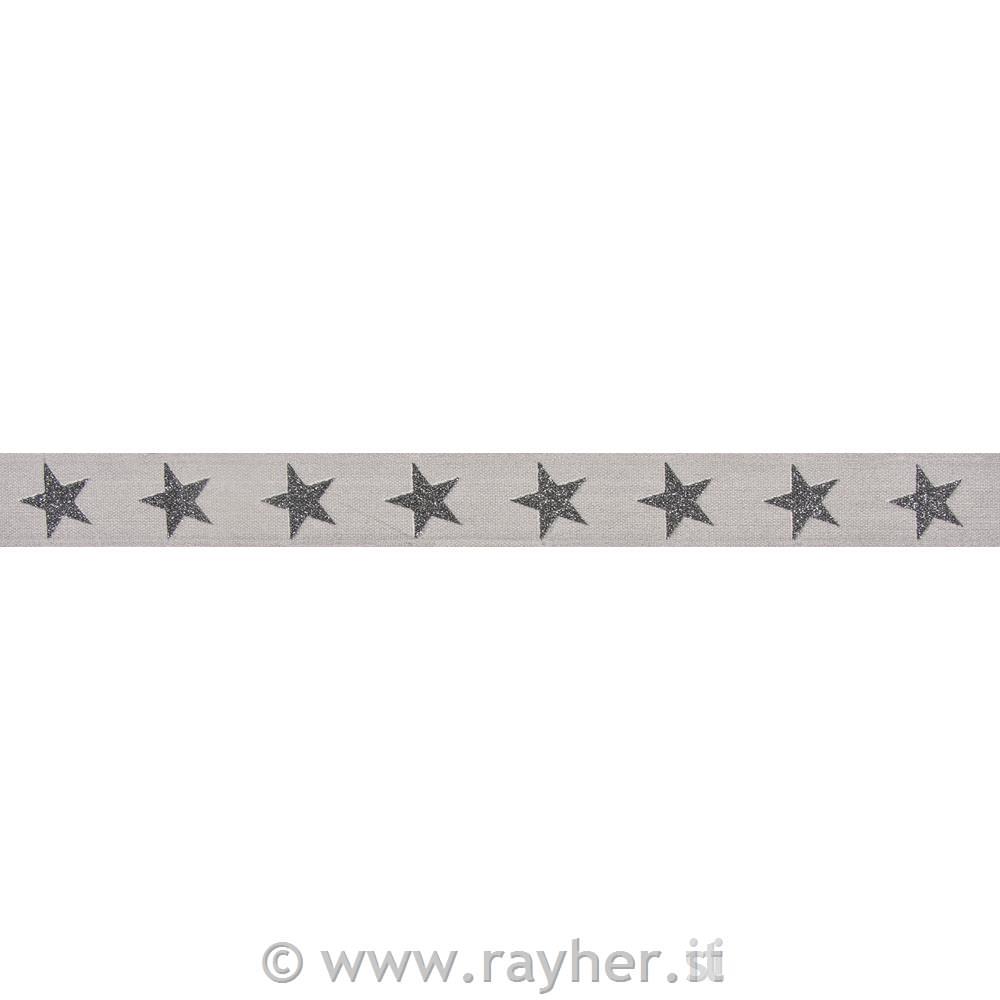 Nastro decorativo incanto di stelle25mm, c.bordo stabile, rotolo 20mgrigio
