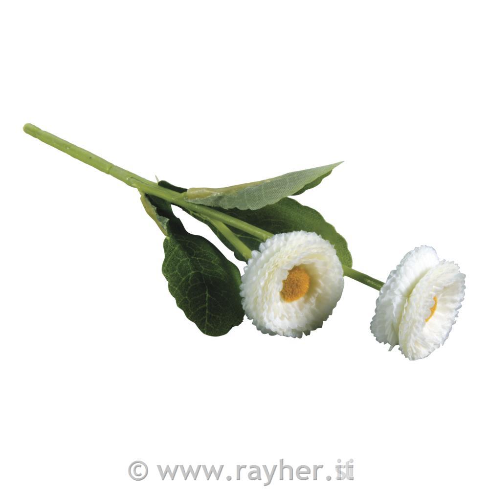 Skupna dolžina 23 cm, dva cvetova o približno 3 cm, 3 listi, cvetovi in listi so izdelani iz tkanine iz tekstilnih vlaken, stebla iz plastike.