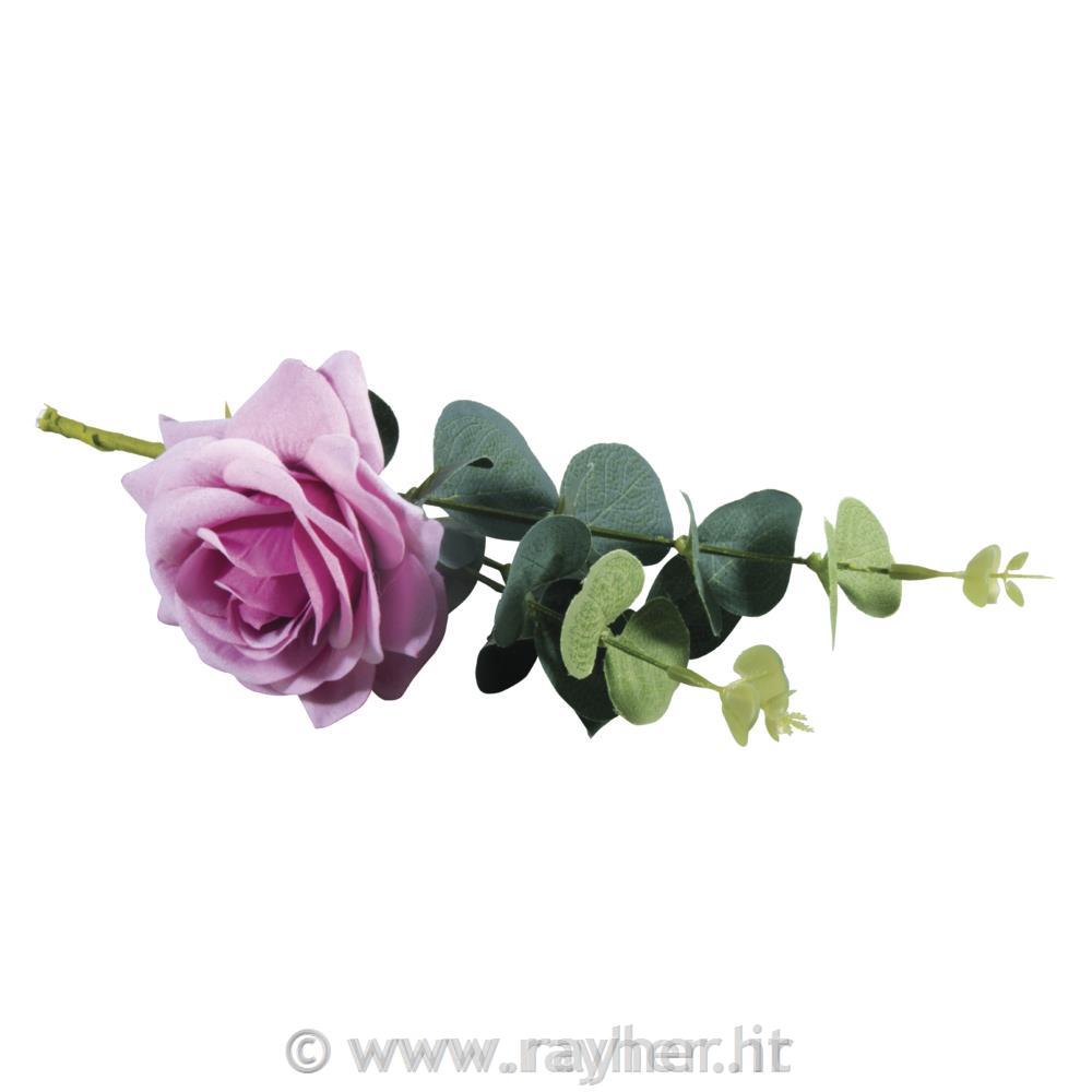 Kraljica med cvetjem. Nežni cvetni listi vrtnice v kombinaciji z vejico evkaliptusa so videti zelo resnični.