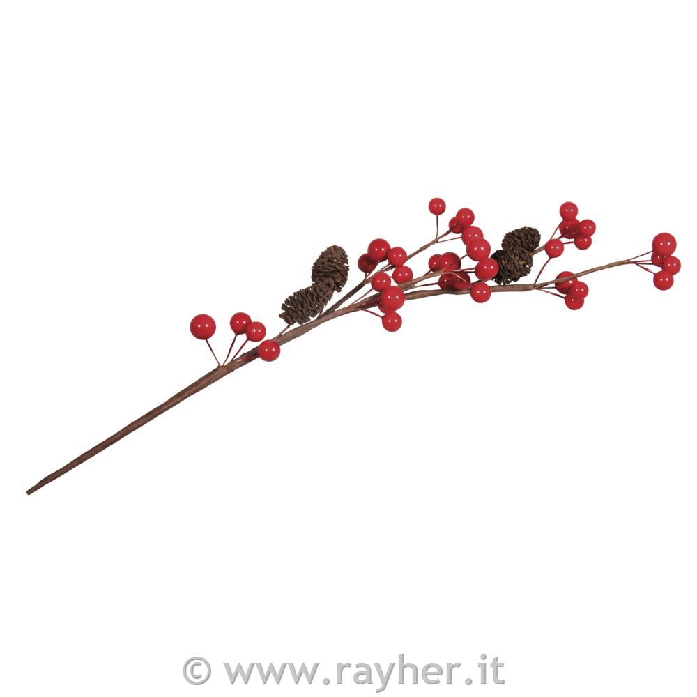 Il rametto decorativo con bacche rosse e piccole pigne e la scelta ideale per composizioni natalizie, corone dell’Avvento, bouquet, decorazioni da tavola o come ornamento autonomo in un vaso. L’aspetto naturale del ramo marrone combinato con il vivace rosso delle bacche crea un’atmosfera calda e festiva.