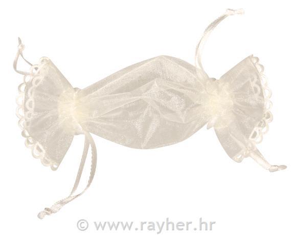 Organza vrečka, slonokoščena, 14x8cm, 4 kosi