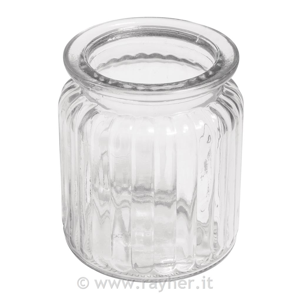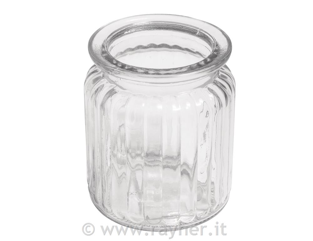 Contenitore vetro scanalato, 7,5x9cm, apertura o 5,5cm, 270ml