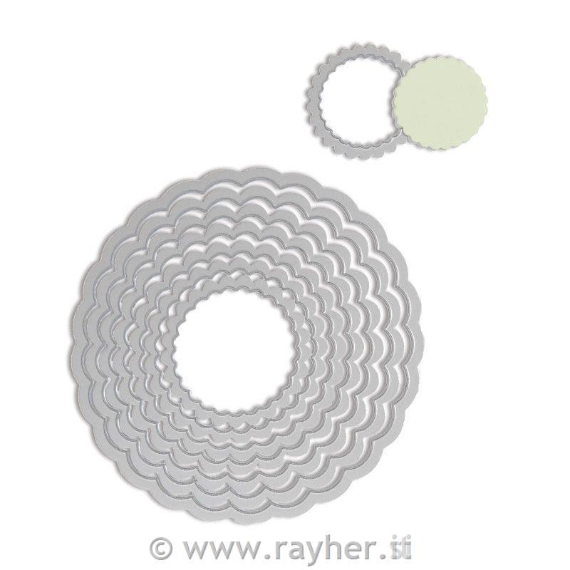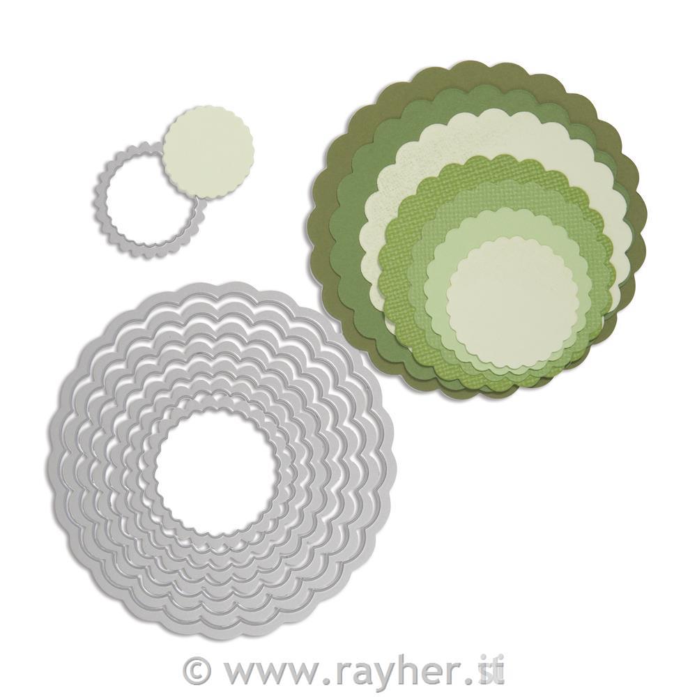 Sizzix Framelits set mascherineCerchi con bordo dec. busta 8pz3,2x3,2cm, 10,8x10,8cm