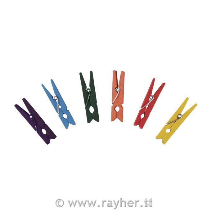 Mollette legno, 4,5 cm, assortiti, busta 24 pz