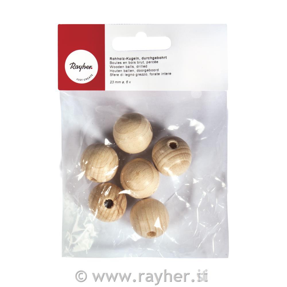 Lesene kroglice, naravne, 23 mm o, luknja 6 mm, 6 kom.