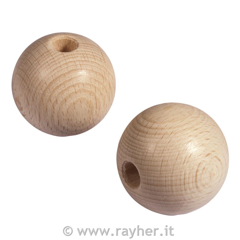 Palline legno grezzo 50mm o8 mm foro busta 2 pz