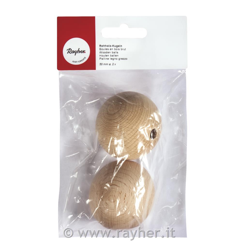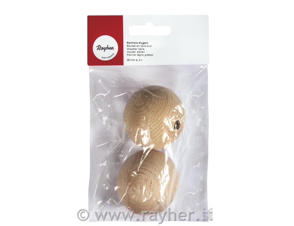 Lesene kroglice, naravne, 50 mm o, luknja 8 mm, 2 kom.