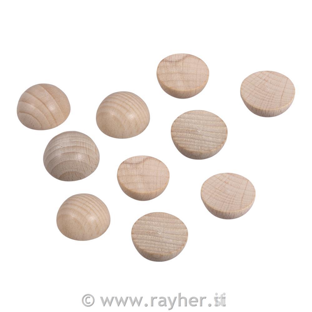 Semisfere legno, non forate, 20mm obus.blis. 10pz
