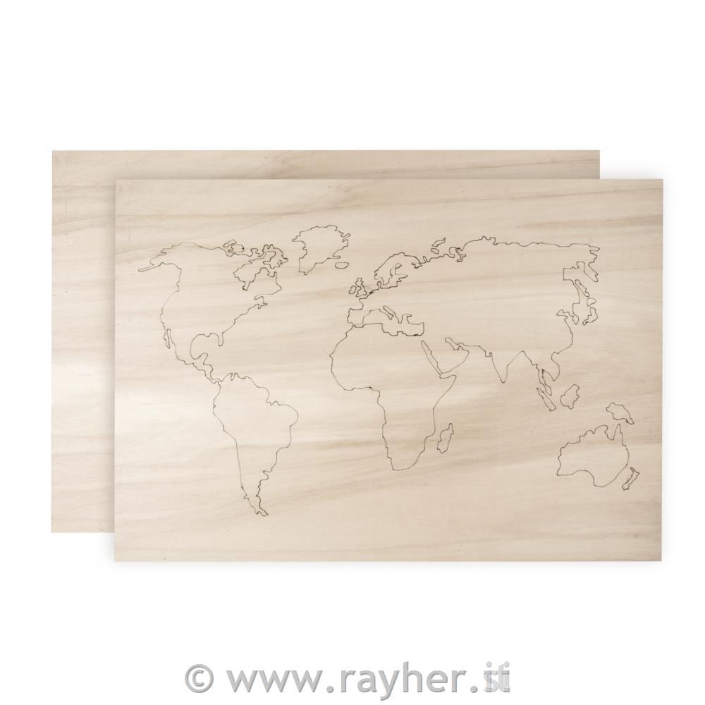 Wood.world map, 2 boards, FSC 100%, 42x29.7x0.4cm, 1xlasered, 1xrear wall