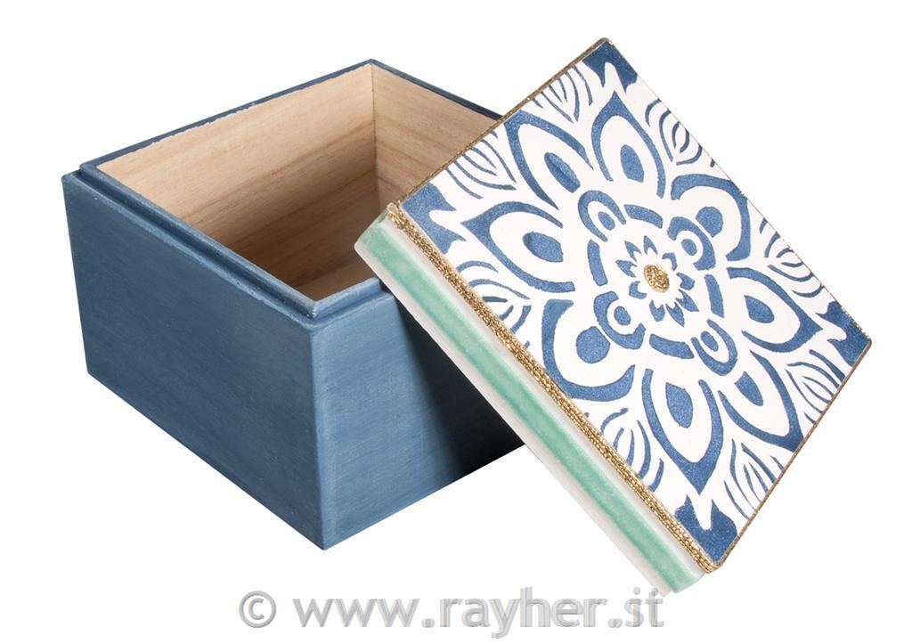 Notranje mere lesene škatle so 10,6x10,6x7 cm.