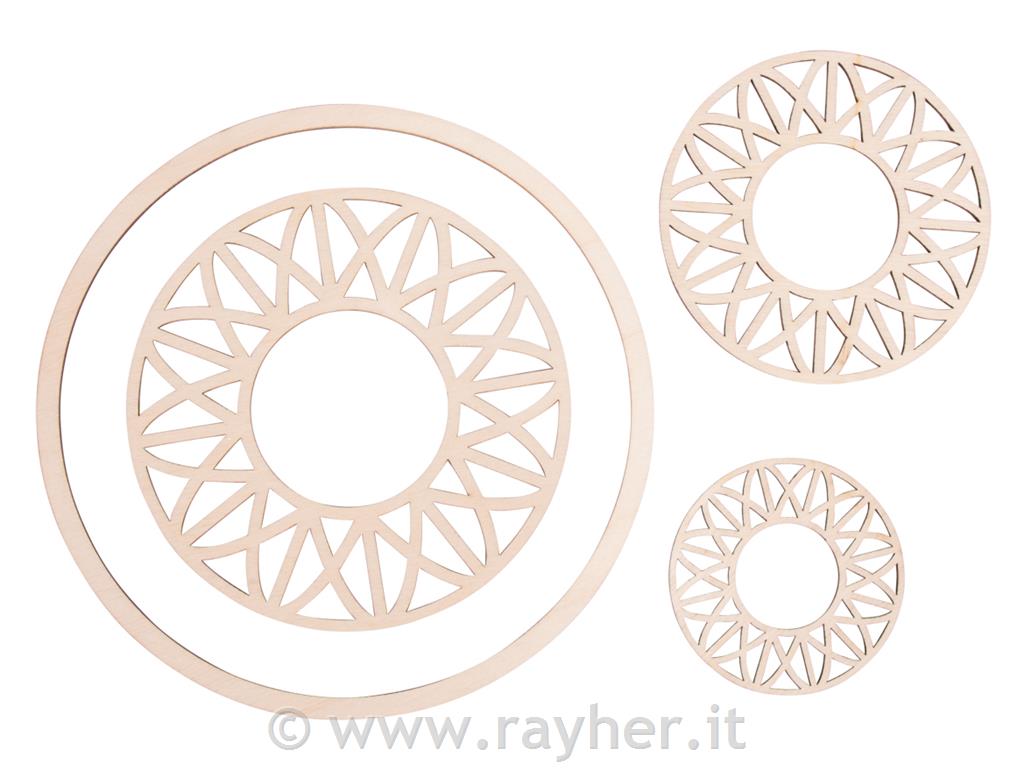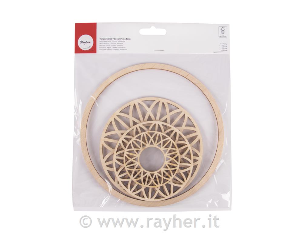 Rondella legno"Dream"moderno, FSC100%,7-13cm+anello o18cm, bus.blis. 4pz
