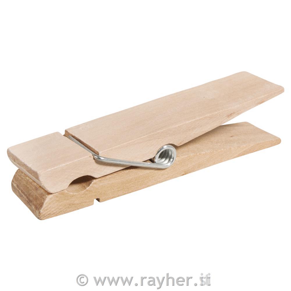 Lesena ščipalka v formatu XL je velika 15x3,5 cm in je opremljen z izjemno močno kovinsko spiralo za stabilno odpiranje in zapiranje zatiča.