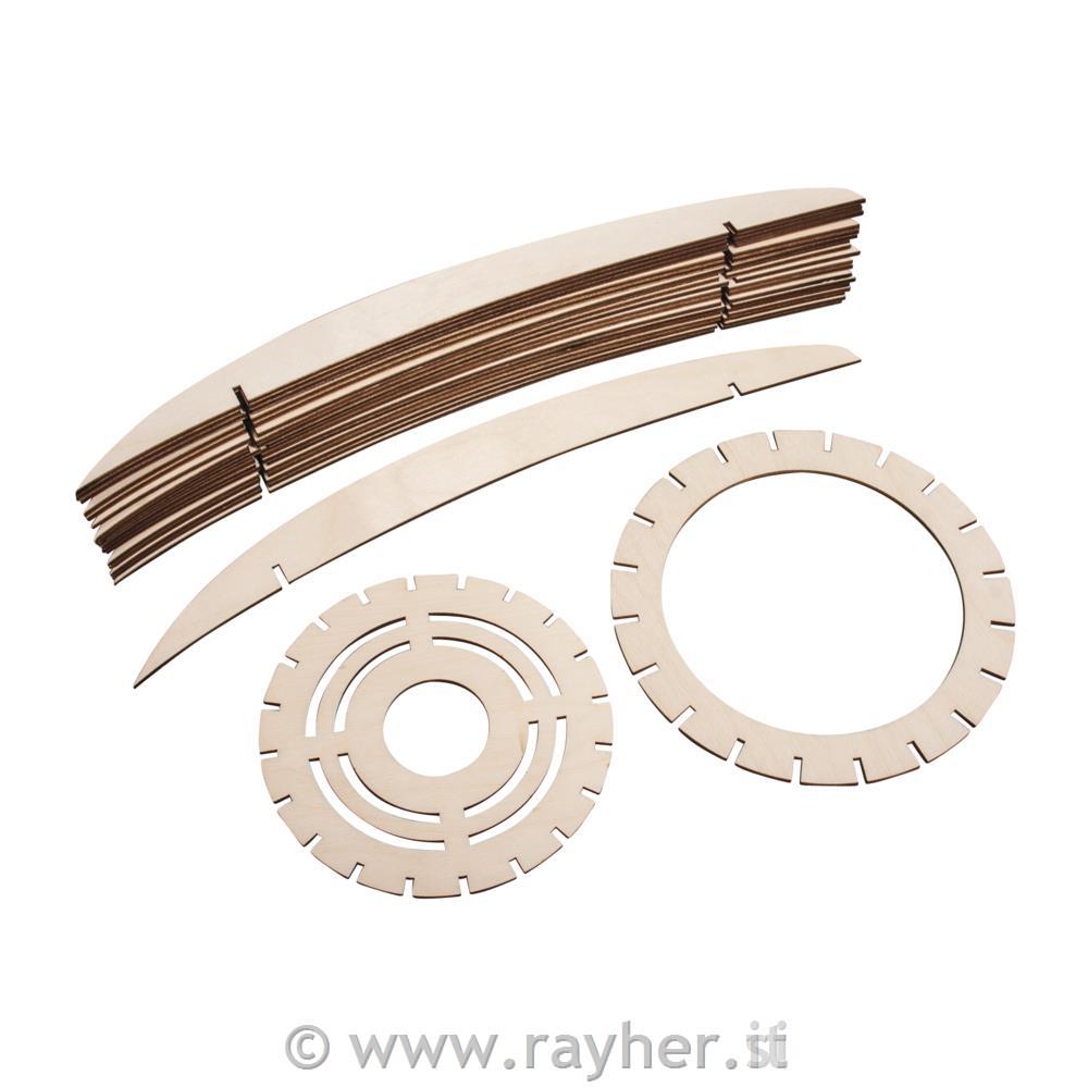 Lamelna svetilka iz brezovega lesa je dobavljena v posameznih delih. Navodila vam natančno pokažejo, kako ga sestaviti. Posamezne letvice je mogoče oblikovati individualno, na primer z barvo, bleščicami itd. Nato pritrdite z lepilom za hobi.