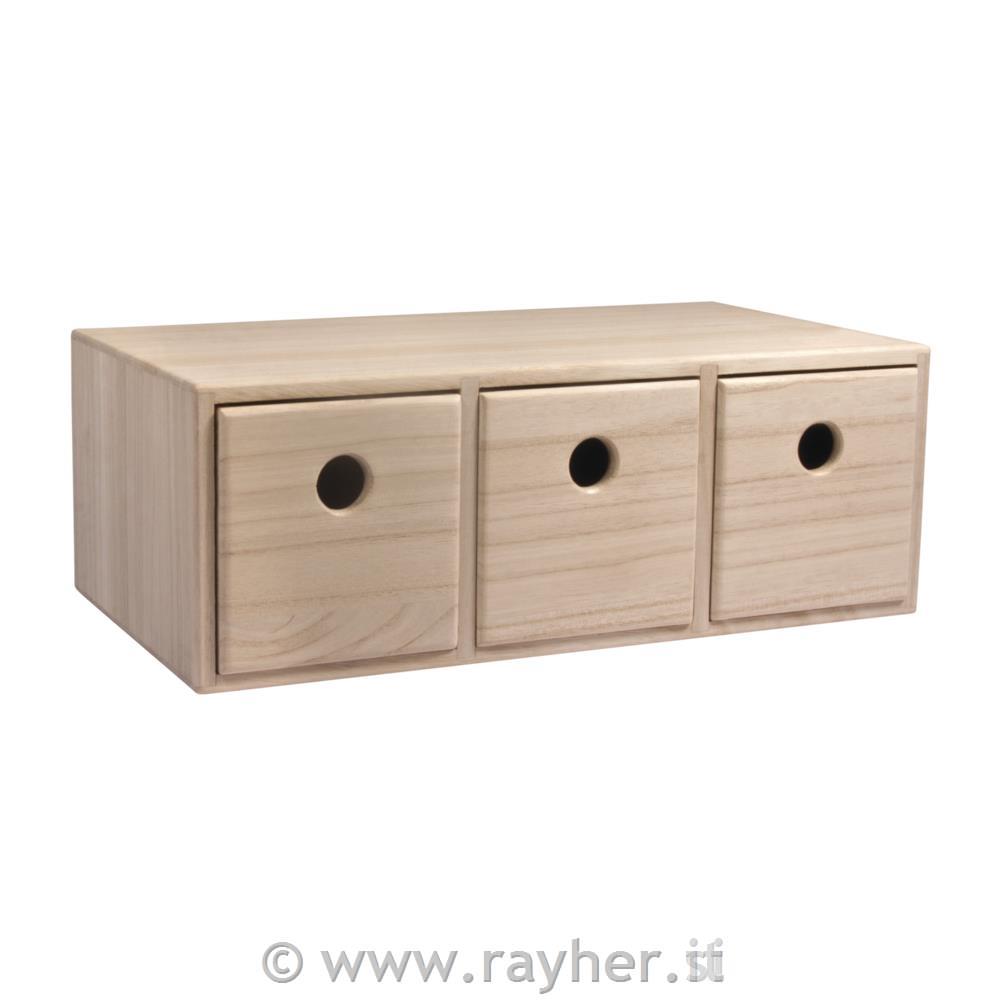 Como legno con 3 cassetti, FSC 100 %, naturale, 32x18x11,5cm