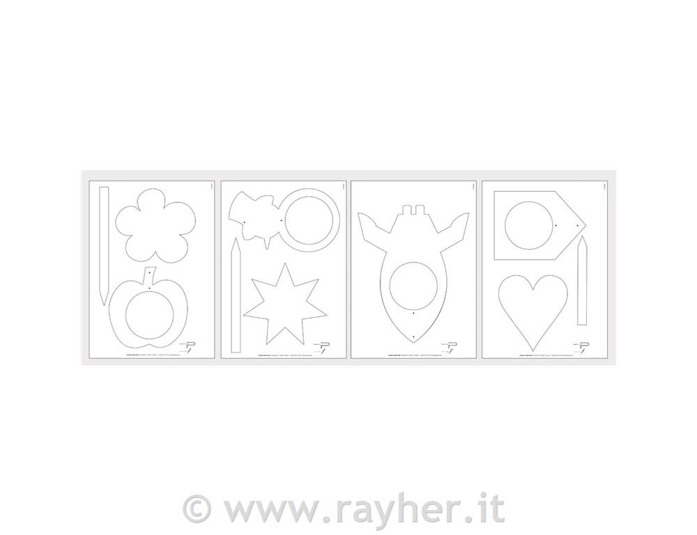 Vsebina kompleta: 4x vezane plošče 30 x 20 cm, debelina 4 mm, 1x papir za prenos, 4x predloge motivov