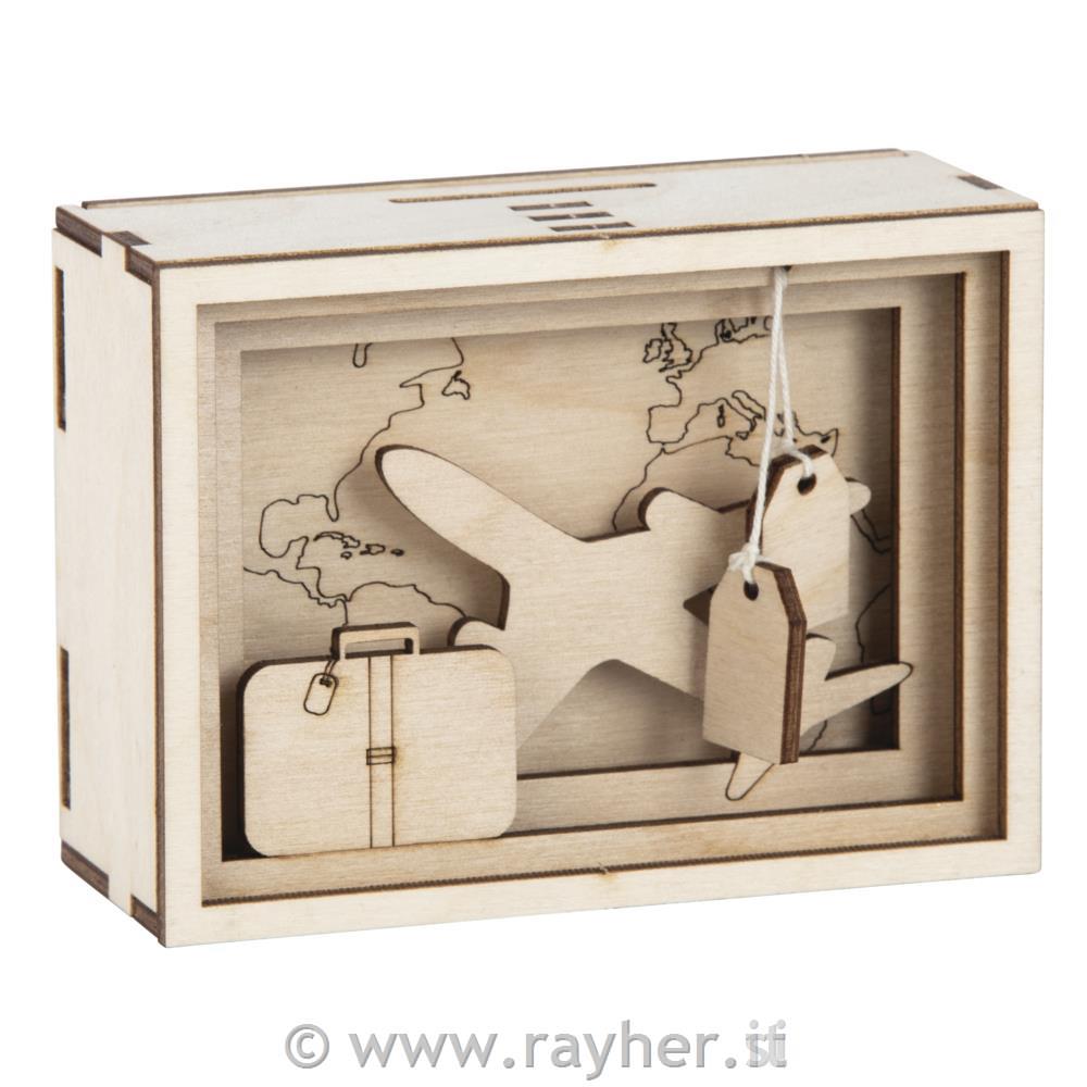 Lesena 3D škatla za darilo "Potovanje", 11.5x8.5x5cm
