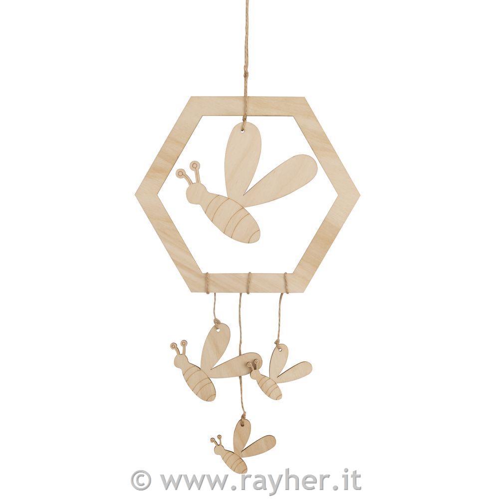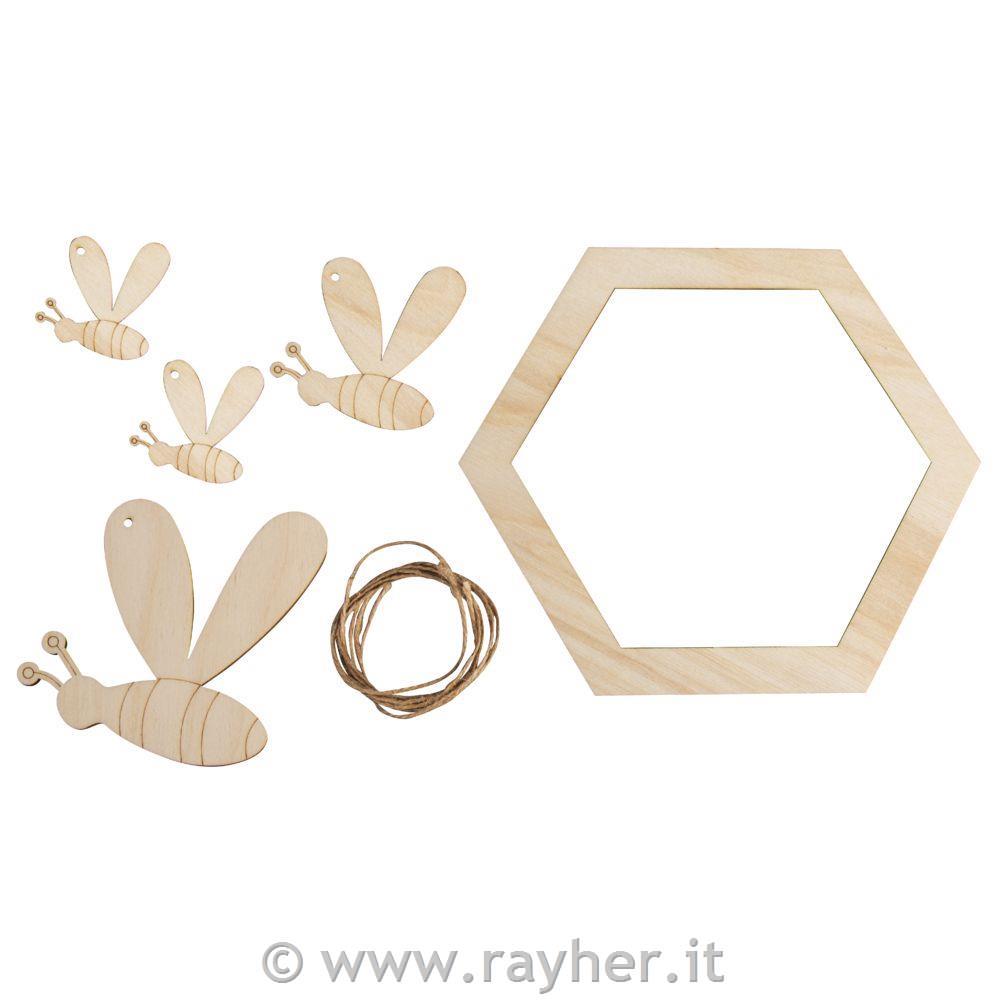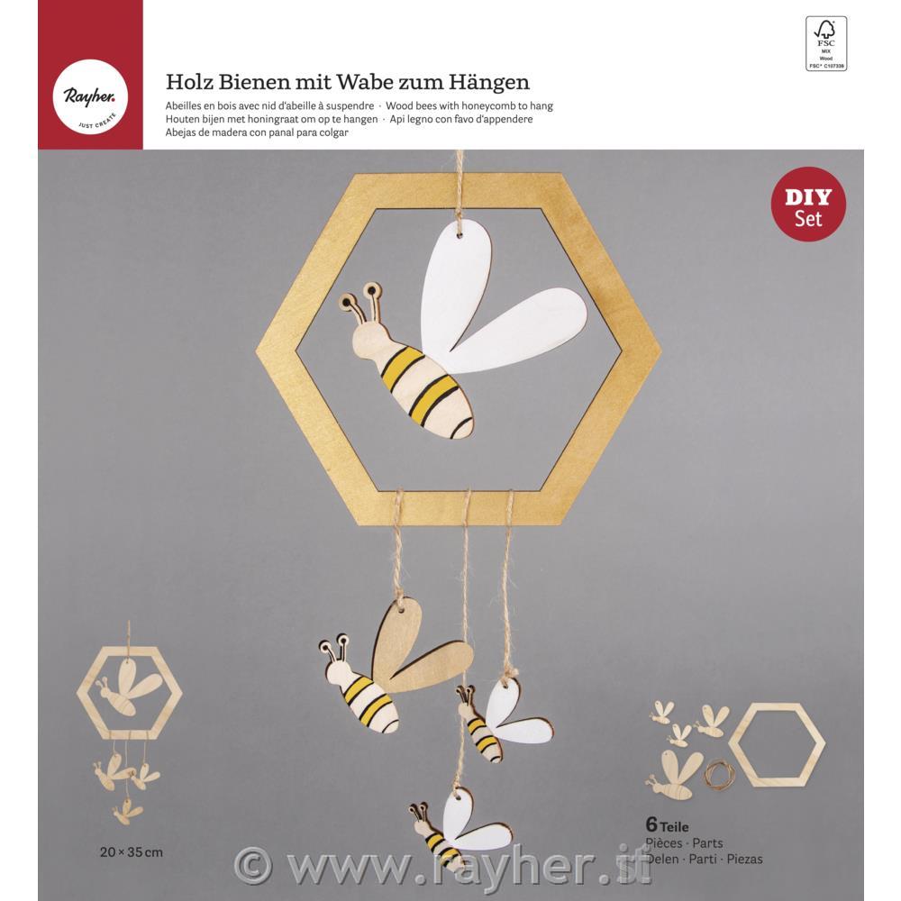 Leseni ustvarjalni set Čebelice in satovje, obešanka, 4.5-20cm